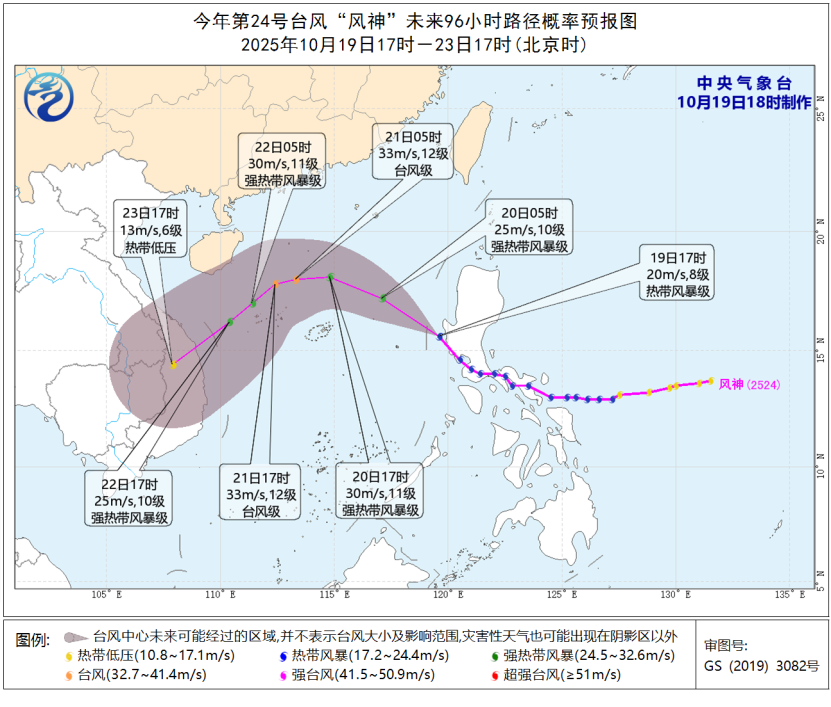 19日,今年第24号台风“风神”进入南海东部海面,最强可达强热带风暴级或台风级。受其影响,海南铁路部分进出岛列车停运,琼州海峡客滚运输将于20日14时停运,预计影响时间到23日上午。