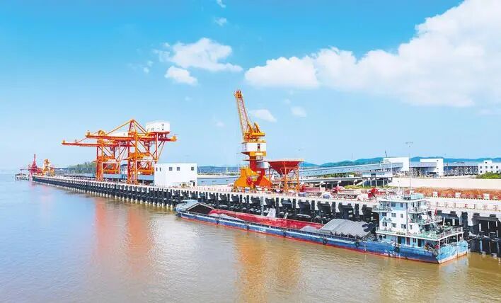 10月23日,武穴港区多式联运工程雏形已现,综合码头部分泊位正在进行带货调试。该项目总投资约36亿元,是国内首个投建营一体化的铁水联运项目,建成后,将有效连通长江黄金水道与京九铁路,助力大别山革命老区通江达海。