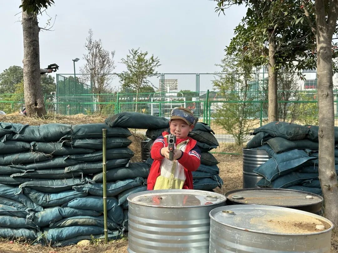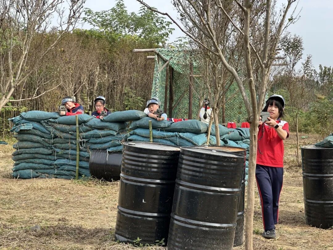 十时许,两班学生有序互换场地与内容。四(6)班转至范家岗村,观影凝思,感受红色精神;随后也动手参与窑炉烘焙,体验从原料到成品的制作乐趣。而五(10)班则前往盂钵桥村,投身真人CS战场,在模拟对抗中锤炼团队协作与意志品质。