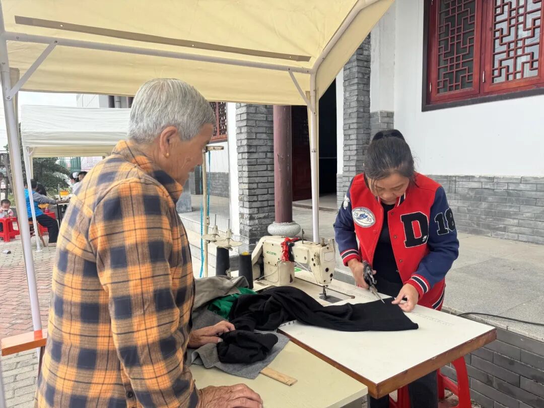 最聚人气处,当属一连串便民服务点位组成的“暖心风景线”:爱心义诊台前,经验丰富的医生耐心为老人测量血压、检测血糖,细致解答各类健康疑问;义剪服务区里,理发师志愿者巧手翻飞,伴着剪刀的清脆声响,为居民理出一个个清爽利落的新发型;便民缝补点里,巧手志愿者正飞针走线,专注地为街坊邻里修补衣物,一针一线缝出邻里情深。每个服务点前都排起长队,欢声笑语萦绕其间,勾勒出一幅党群同心、温情流动的生动画面。