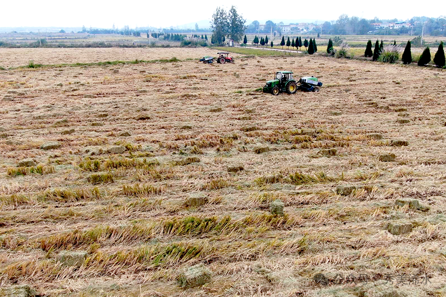 今年的秋收,湖北振丰农业有限公司全面推进秸秆机械化离田作业,水稻收割与秸秆打捆同步进行,有效解决了以往秸秆“收不起、运不走、存不下”的难题。