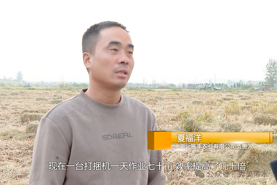 湖北振丰农业有限公司负责人 夏福洋:以前人工收集效益慢,成本高,还受天气影响,现在一台打捆机一天作业70亩,效率提高了几十倍。
