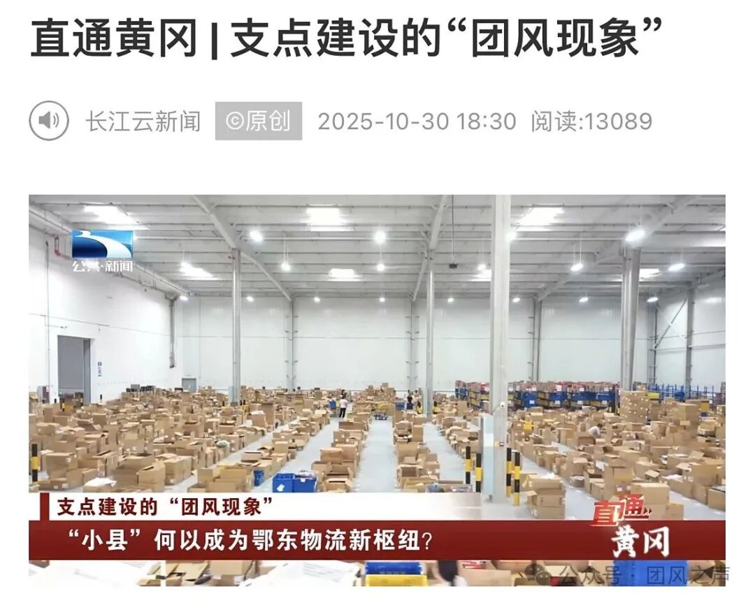 团风是“湖北省最年轻的县”,也是一个总人口不足40万的“小县”,但是在快递物流领域却形成了引人瞩目的“团风现象”:全县快递日均上行量突破11.5万单,吸引了李宁、安踏、特步等一批头部运动品牌前来设立云仓,走出了一条“小县大物流”的新路子。
