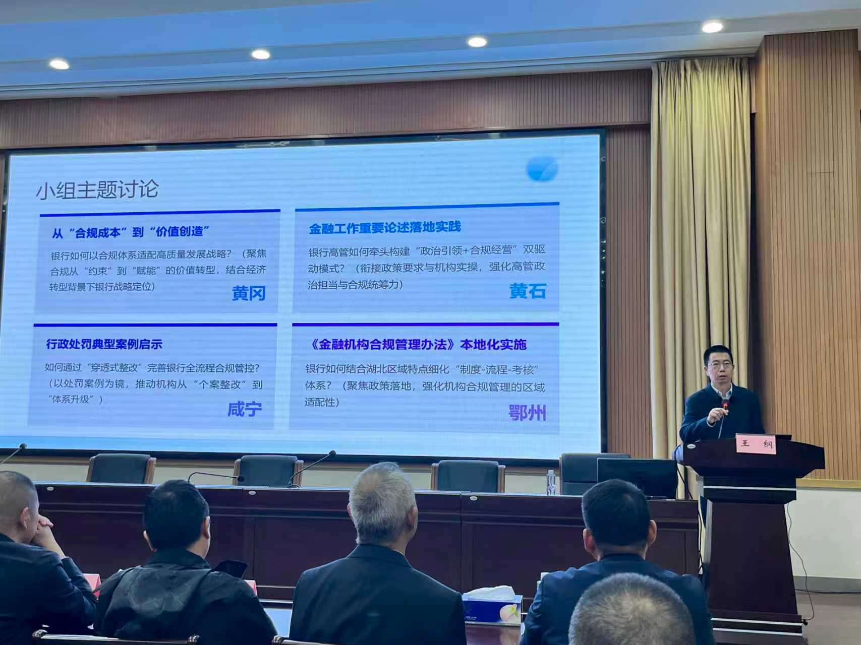 本次培训旨在切实提高湖北省银行业高级管理人员合规意识与专业素养,有效提升监管质效、防范金融风险。课程紧密围绕当前监管重点与合规实务需求设置,特邀湖北省委党校教授姜涛、武汉大学法学教授崔凯、中国银行湖北省分行风险管理专家杨林辉,以及湖北省金融监管分局相关处室负责人和业务骨干进行专题授课。