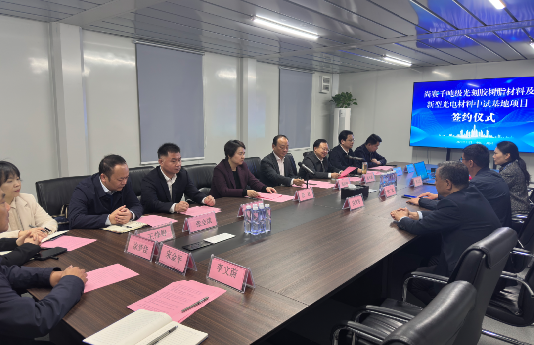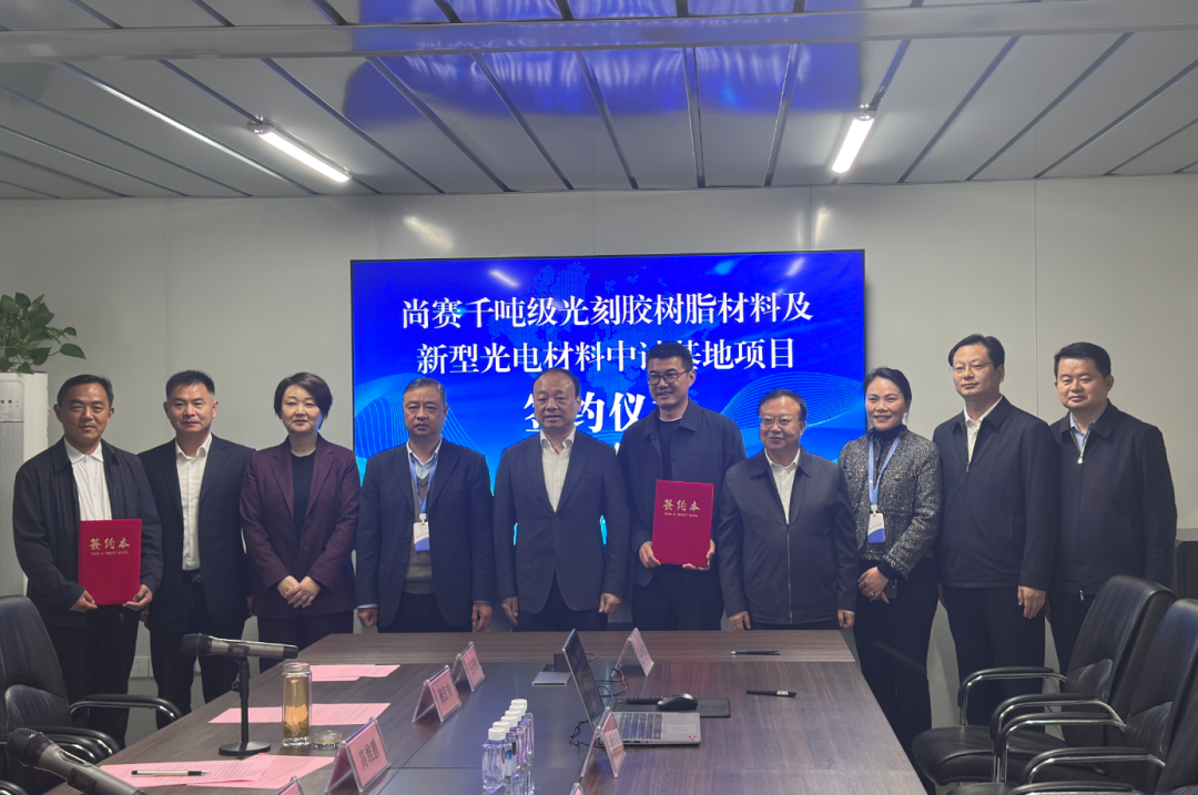 此次签约的尚赛千吨级光刻胶树脂材料及新型光电材料中试基地项目,计划总投资5亿元,将建设有机小分子精细化工工艺优化与量产衔接平台、超高纯化学品纯化工艺优化与量产衔接平台、高性能树脂聚合工艺优化与量产衔接平台、有机光电功能材料配方优化与量产衔接平台、中试质控及诊断服务平台等五大平台,建设周期24个月。项目建成后,将有力推动高新区在新材料,特别是高端光电材料产业链的完善与升级,为培育新质生产力、构建现代化产业体系提供重要支撑。穆广园表示,感谢黄冈市委、市政府及高新区管委会长期以来给予尚赛的信任与全方位支持。尚赛始终深耕高纯有机半导体材料的研发生产,核心产品打破国外垄断,成功进入全球主流厂商供应链,此次选择再度选择黄冈、布局千吨级光刻胶树脂材料及新型光电材料中试基地,正是源于对黄冈高新区优质营商环境、完善产业生态与高效服务保障的高度认可和坚定信心。公司将以此次签约为契机,全力推动项目早日开工建设、早日投产达效,力争在协议期内实现预期目标,为黄冈光电材料产业高质量发展贡献力量。高维鹏在致辞中对项目的签约表示热烈祝贺。他指出,尚赛公司与高新区结缘已久,合作基础坚实深厚。面对新项目的签约,高新区将始终秉持“项目为王、服务至上”理念,推动各部门主动靠前、协同发力,全力保障项目前期各项准备工作顺畅推进、后期建设施工高效实施,用最实举措让企业在黄冈放心投资、舒心创业、安心发展。
