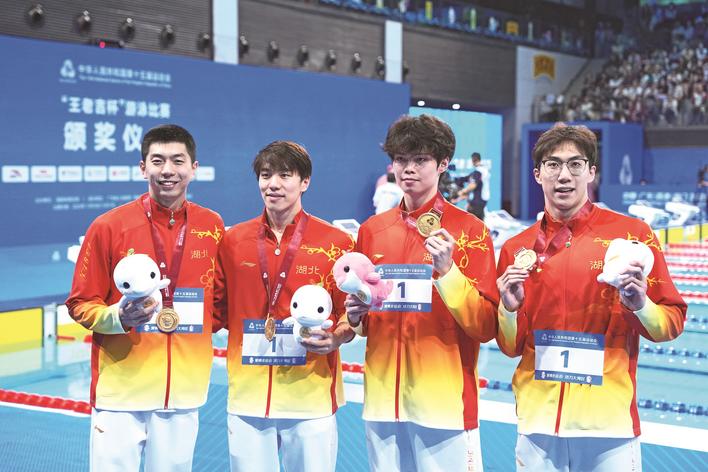 游泳男子4X100米混合泳接力赛湖北队夺冠新华社发