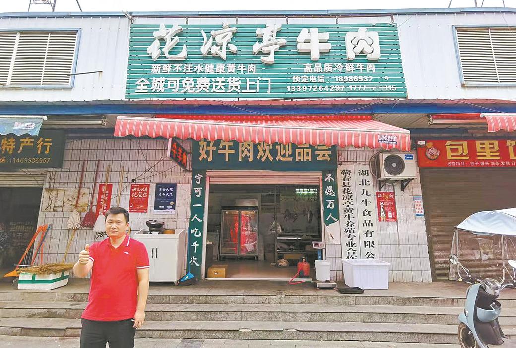 为拓宽销路,2010年底,何金涛在蕲春县城和深圳龙岗分别设立牛肉销售点,让新鲜的家乡牛肉走进城市市场。“做生意讲的是诚信,品质不能打半点折扣。”他坚持科学养殖、诚信经营,从不以次充好,用实际行动打响“花凉亭好牛肉”的特色品牌。