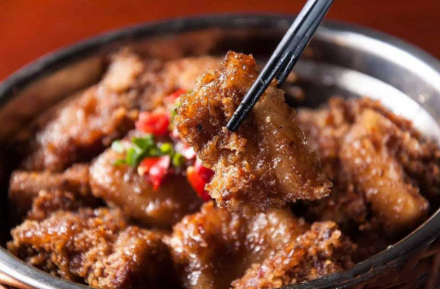 黄梅米粉蒸肉选用本地籼米炒香后磨成粗粉,混合五香粉、辣椒粉等调料,包裹五花肉腌制,大火蒸1小时以上,米粉吸饱肉脂醇香,肉质酥软不散,入口脂香裹挟着谷物的清甜,蒸腾的雾气中弥散的酱香与米香。