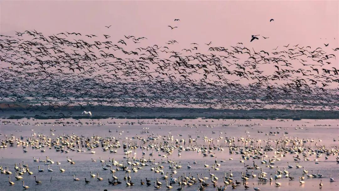 近日,龙感湖湿地成功入选“国家重要湿地”。该湿地位于长江中下游关键节点,总面积7749.12公顷,是青头潜鸭、东方白鹳等珍稀物种的重要栖息地。通过持续生态修复,其生物多样性显著恢复,每年栖息鸟类超10万只,生态价值获国家层面认可。