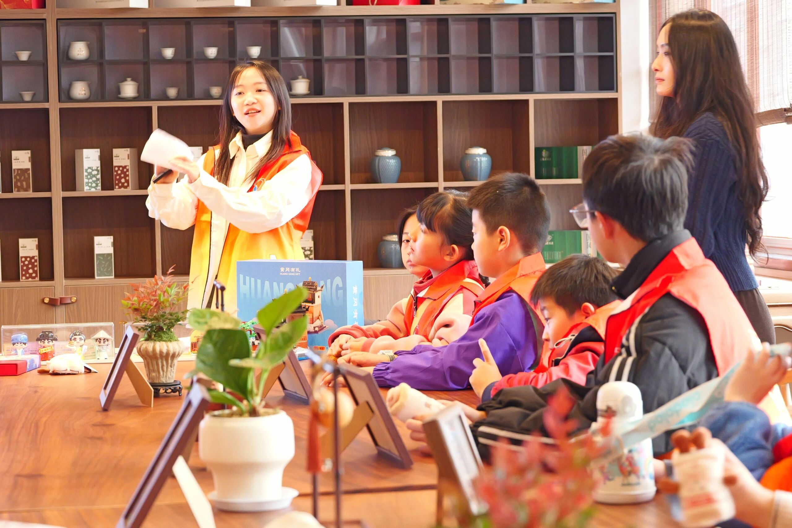 活动现场,市文旅集团电商部负责人刘倩为小志愿者们进行了专业指导,帮助他们深入理解“黄冈有礼”系列文创产品背后的文化内涵。小小志愿讲解员们认真聆听讲解,仔细观察文创产品,并在实地体验环节积极尝试讲解。通过学习,孩子们不仅了解到“黄冈有礼”系列文创产品的设计理念和工艺特色,还掌握了如何将东坡文化与产品故事融会贯通的讲解技巧。目前,黄冈文旅集团打造的“黄冈有礼”文创品牌已自主开发843款深度融合地方文化的产品,形成了强大的市场影响力与文化传播价值。小小志愿讲解员们一边培训一边实践,通过现场选品、现场试讲,孩子们用纯真、富有感染力的解说和童趣化的演示,使文创产品背后的文化内涵更易被公众理解和接纳,让市区文创产品真正“活”起来、“走”出去。