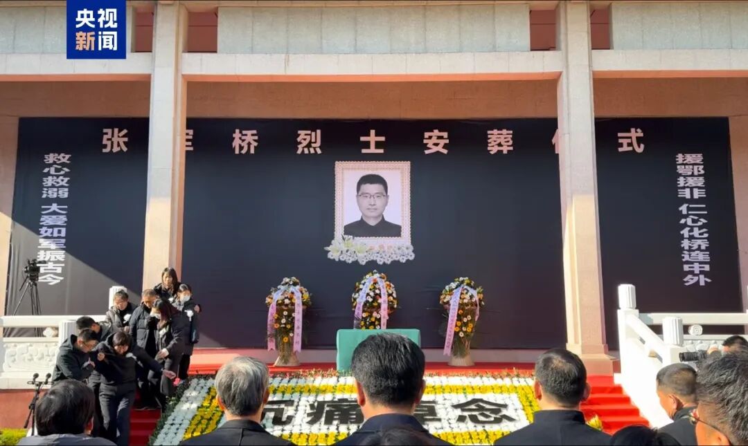 25日,张军桥烈士骨灰安葬仪式在山东潍坊举行。今年6月,他在坦桑尼亚执行援外医疗任务期间,因救落水民众不幸牺牲,年仅38岁。