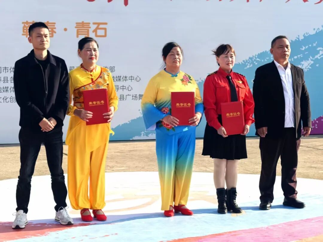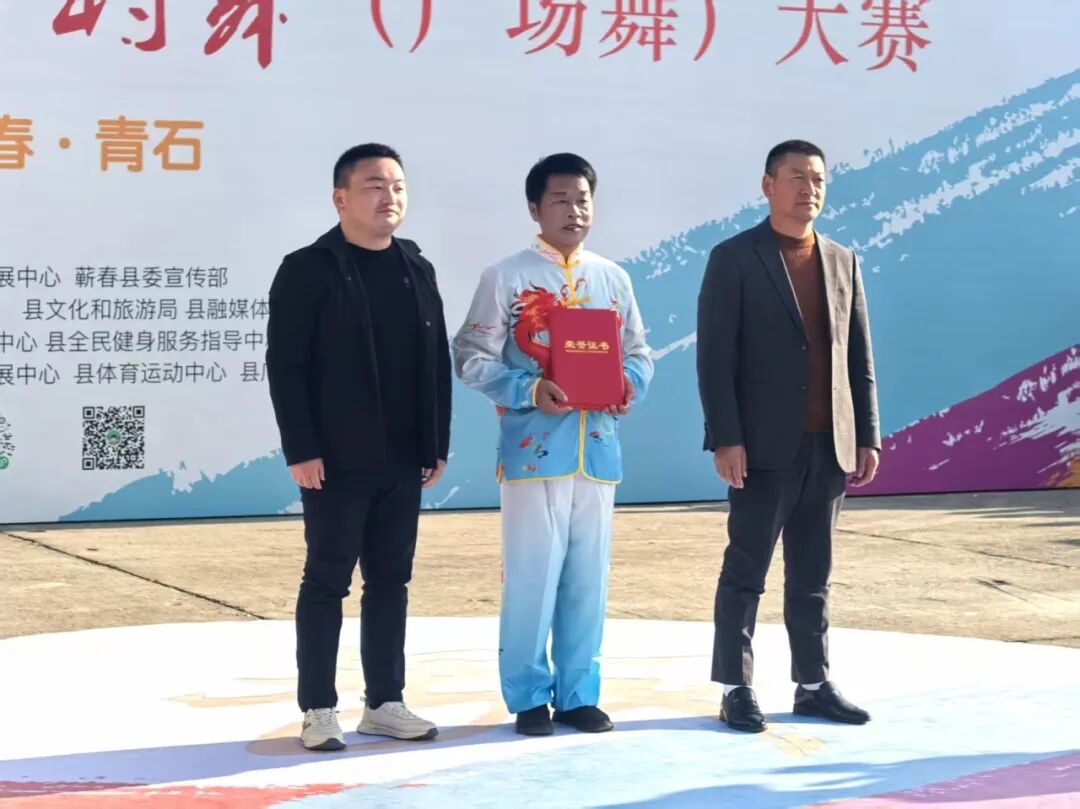 蕲春县文旅局大型文化艺术活动中心主任徐琨;黄冈市体育舞蹈运动协会常务理事,囯家级社会体育指导员,国家一级裁判、国家一级教练,曾荣获全国常青组标准舞冠军孙永东;蕲春县广场舞协会会长、优秀基层文化干部、国家一级社会体育工作指导员李中平。