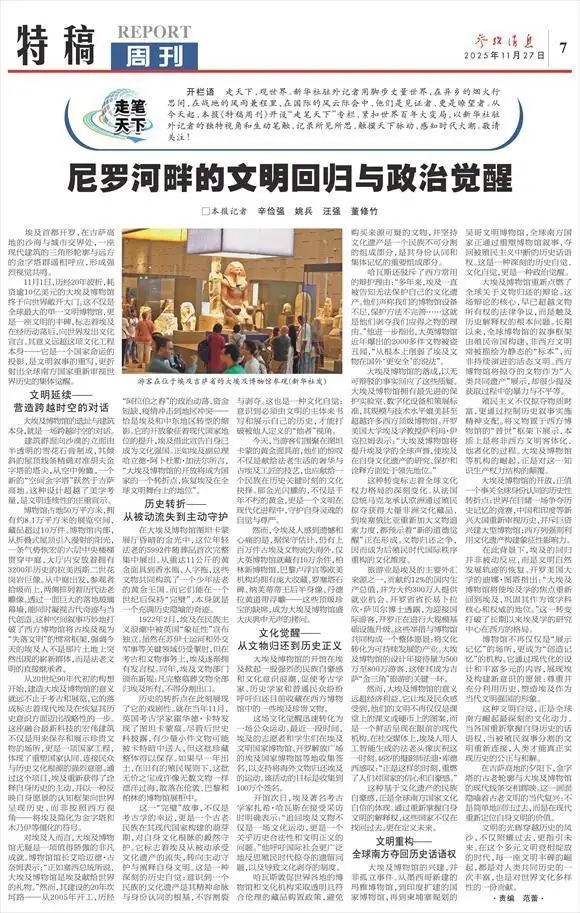 11月1日,历经20年波折,耗资逾10亿美元的大埃及博物馆终于向世界敞开大门。这不仅是全球最大的单一文明博物馆,更是一座文明的丰碑,标志着埃及在经历动荡后,向世界发出文化宣言。其意义远超这项文化工程本身——它是一个国家命运的投影,是文明叙事的重写,更折射出全球南方国家重新审视世界历史的集体觉醒。