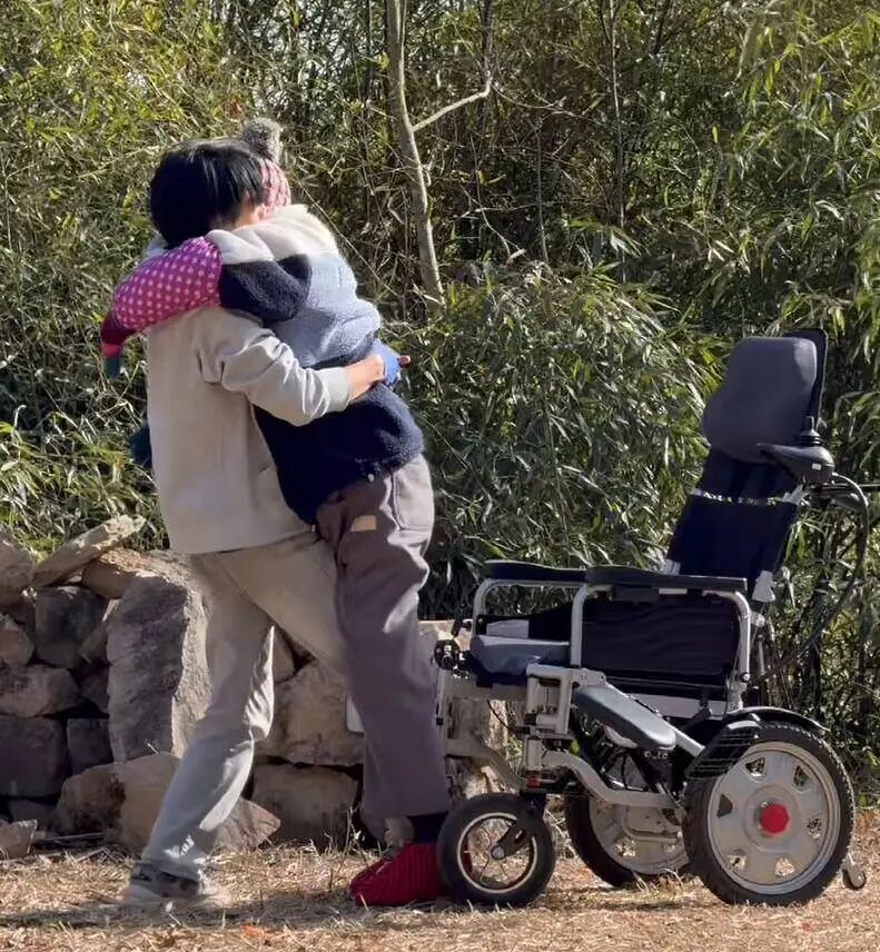 郭求生抱起坐在轮椅上的母亲(视频截图)