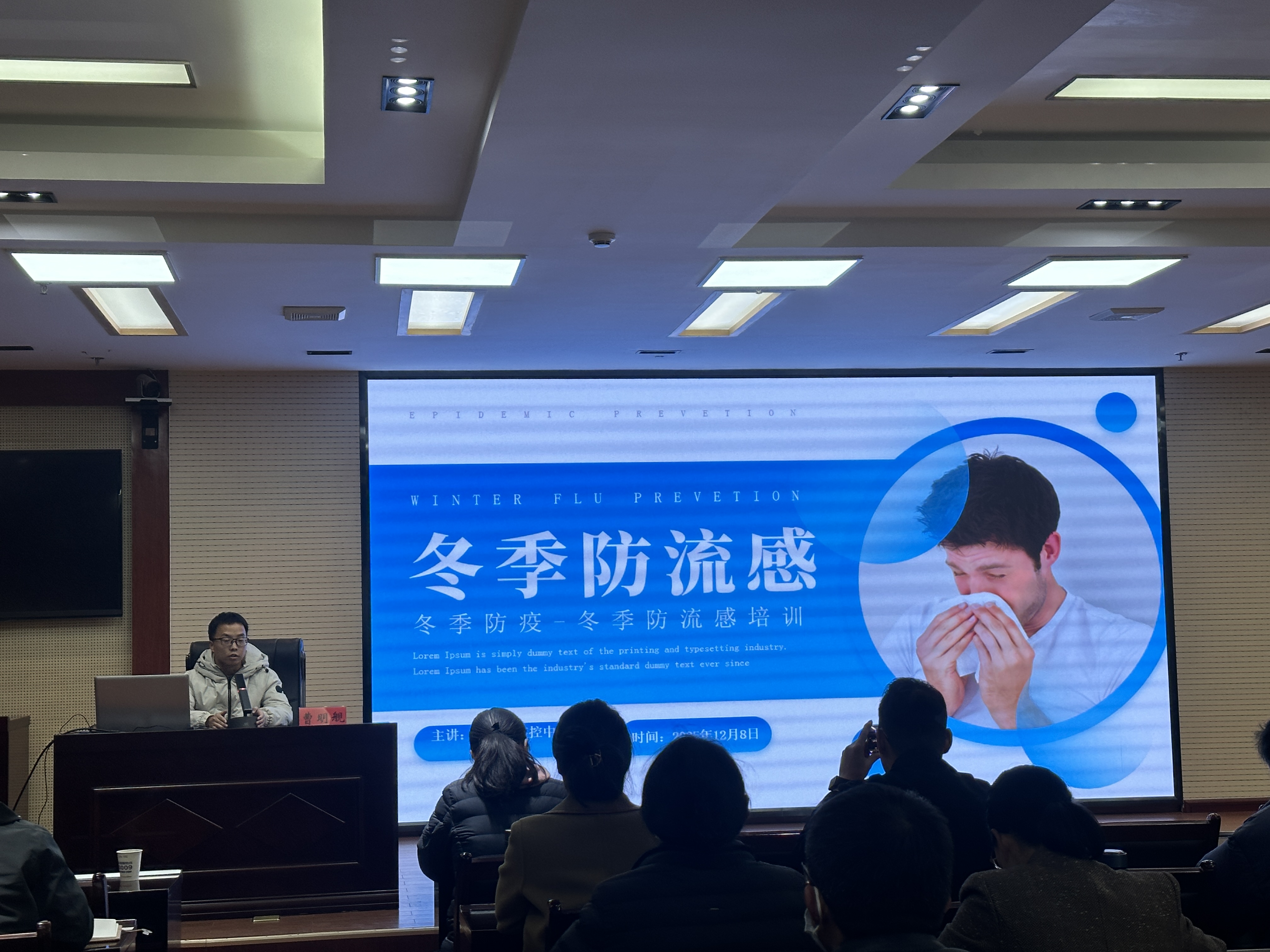市疾控中心传染病科曹明舰受邀在会上作流感科普与预防专题讲座。讲座围绕流感的传播途径、临床症状、与普通感冒的区别等核心内容,结合校园防控实际,详细讲解了科学防护措施、环境消杀技巧及应急处置流程,为学校精准开展防控工作提供了专业指导。