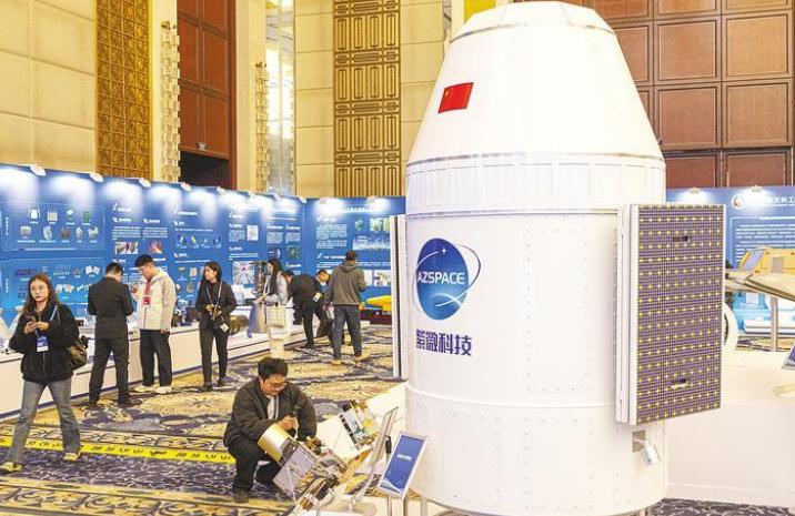 12月3日,一名嘉宾在“楚天”星座的模型前参观。 (湖北日报全媒记者 任勇 摄)