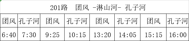 应团风县淋山河镇孔子河村村民的出行需求,团风交投公司将从201线路团风——淋山河调剂出一台公交车进行线路延伸,发班时间如下。