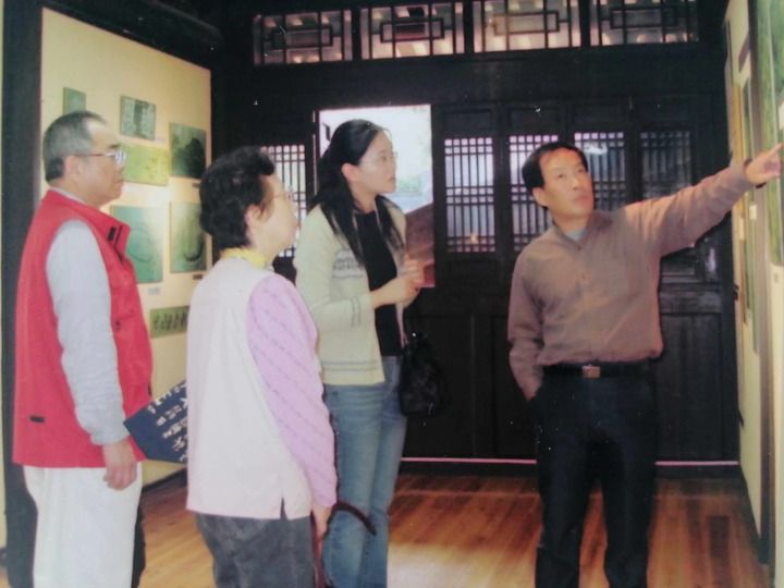 2007年11月,谢必震(右一)带琉球大学时任校长夫妇参观福州琉球馆。(受访者供图)