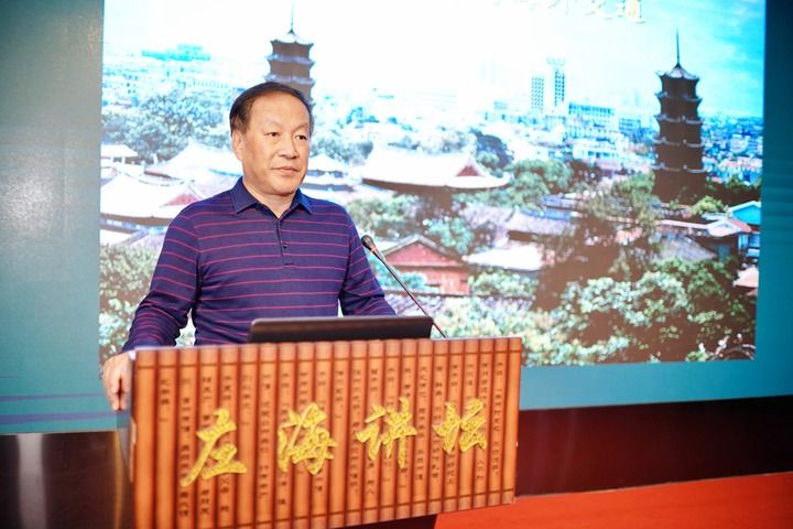 谢必震在福州左海讲坛面向市民讲述福建文化在琉球的传播与影响。(受访者供图)