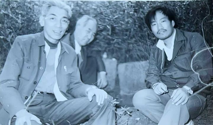 1993年,谢必震(右一)同前辈一起考察福州高盖山琉球墓。(受访者供图)