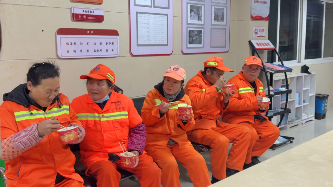一群常年穿梭街巷的“文明使者”——出租车司机,与志愿者们共同抵达“24小时工会驿站”,将一碗碗刚出锅、冒着氤氲热气的饺子,亲手递到晨起劳作的环卫工人手中。