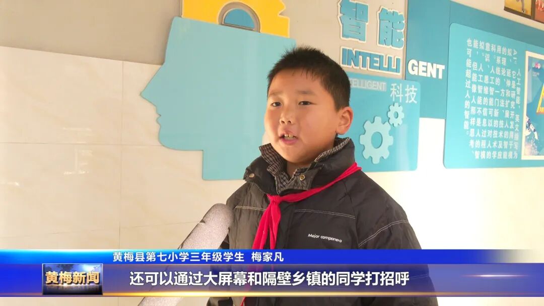 黄梅县第七小学的现代化教室里,一位老师正通过智慧屏幕,与十几公里外的乡村小学进行实时视频连线,两地的孩子同上一堂美术课,共同完成一幅画作。
