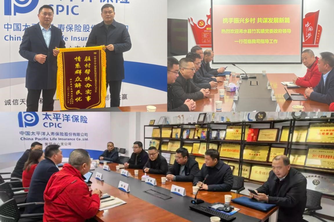 12 月 23 日上午 9 时,黄冈市浠水县竹瓦镇党委书记杨彪、镇长鲁尧率镇村干部及驻村工作队,专程前往中国太保寿险黄冈中支公司、中国人民银行黄冈市分行、中国农业发展银行黄冈市分行,赠送感谢信与锦旗,感谢各单位对竹瓦镇乡村振兴工作特别是对朱店村发展给予的大力帮扶。