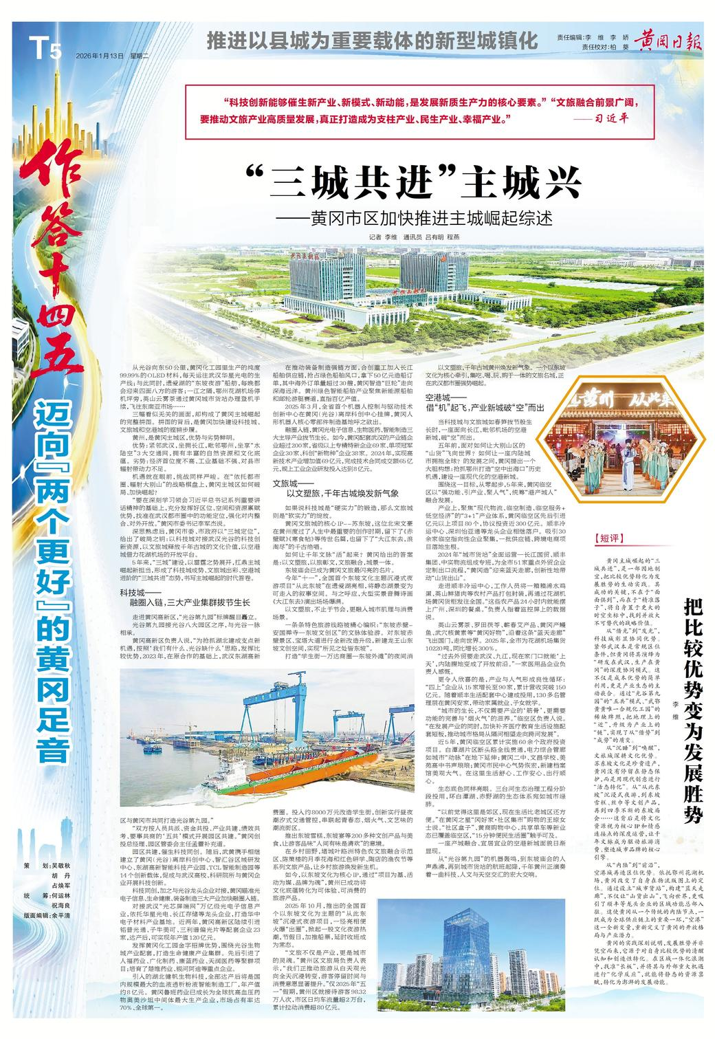 三幅看似无关的画面,却构成了黄冈主城崛起的完整拼图。拼图的背后,是黄冈加快建设科技城、文旅城和空港城的铿锵步履。