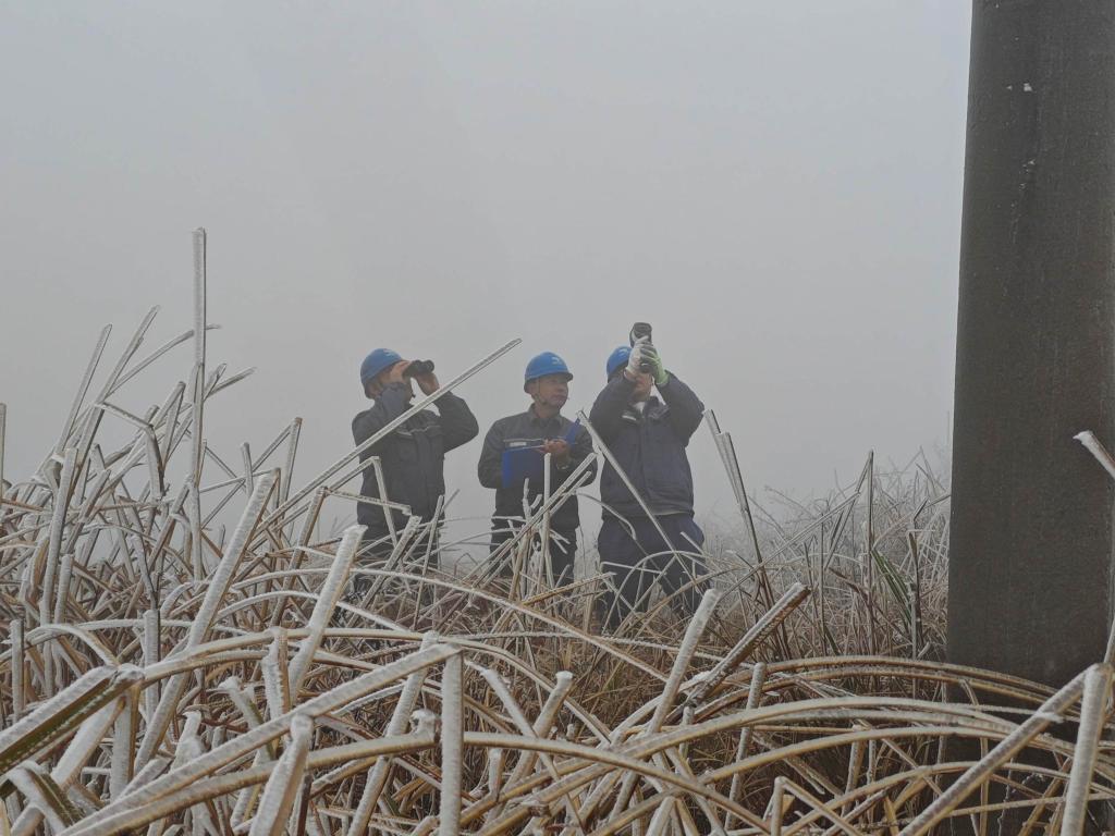 1月20日,南方电网贵阳息烽供电局工作人员开展低温天气下的线路巡检。(受访者供图)