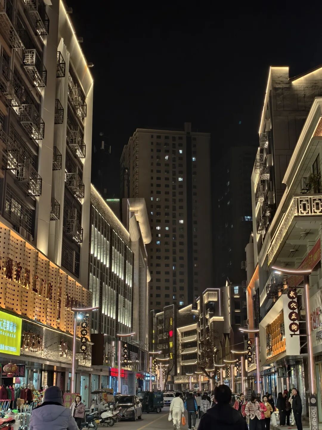 走在光影交错的街巷间,仿佛步入了一幅流动的画卷。崭新的灯光系统让每一条街道都明亮而不失温馨,既有现代都市的精致感,又保留了小城特有的烟火气息。摊贩前依然人头攒动,只是换了新的面孔,多了新的选择——从传统小吃到新式饮品,从地方特产到新潮小食,这里既有老味道的传承,也有新潮流的涌动。