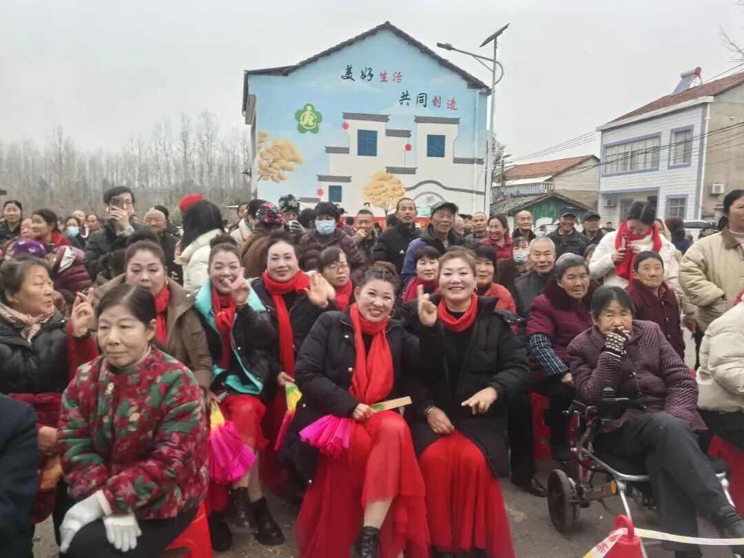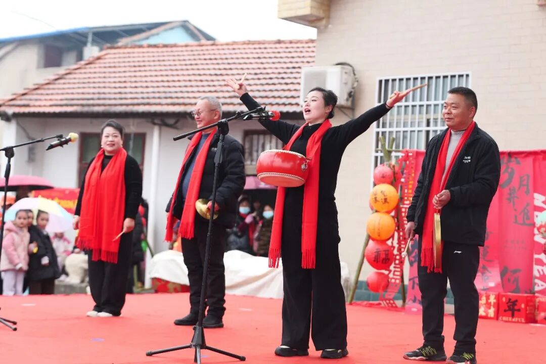 午后两点三十分,彩烟袅袅升空,文艺演出正式拉开帷幕。大鼓《红红火火总是年》鼓点铿锵、气势如虹,瞬间点燃全场热情;理论宣讲环节,当地烈士后代现身,依托红色故事,运用通俗语言生动诠释红色记忆,传承革命精神;黄梅戏《天女散花》婉转悠扬、韵味绵长,将地方戏曲的独特魅力展现得淋漓尽致,让村民在家门口过足戏瘾。