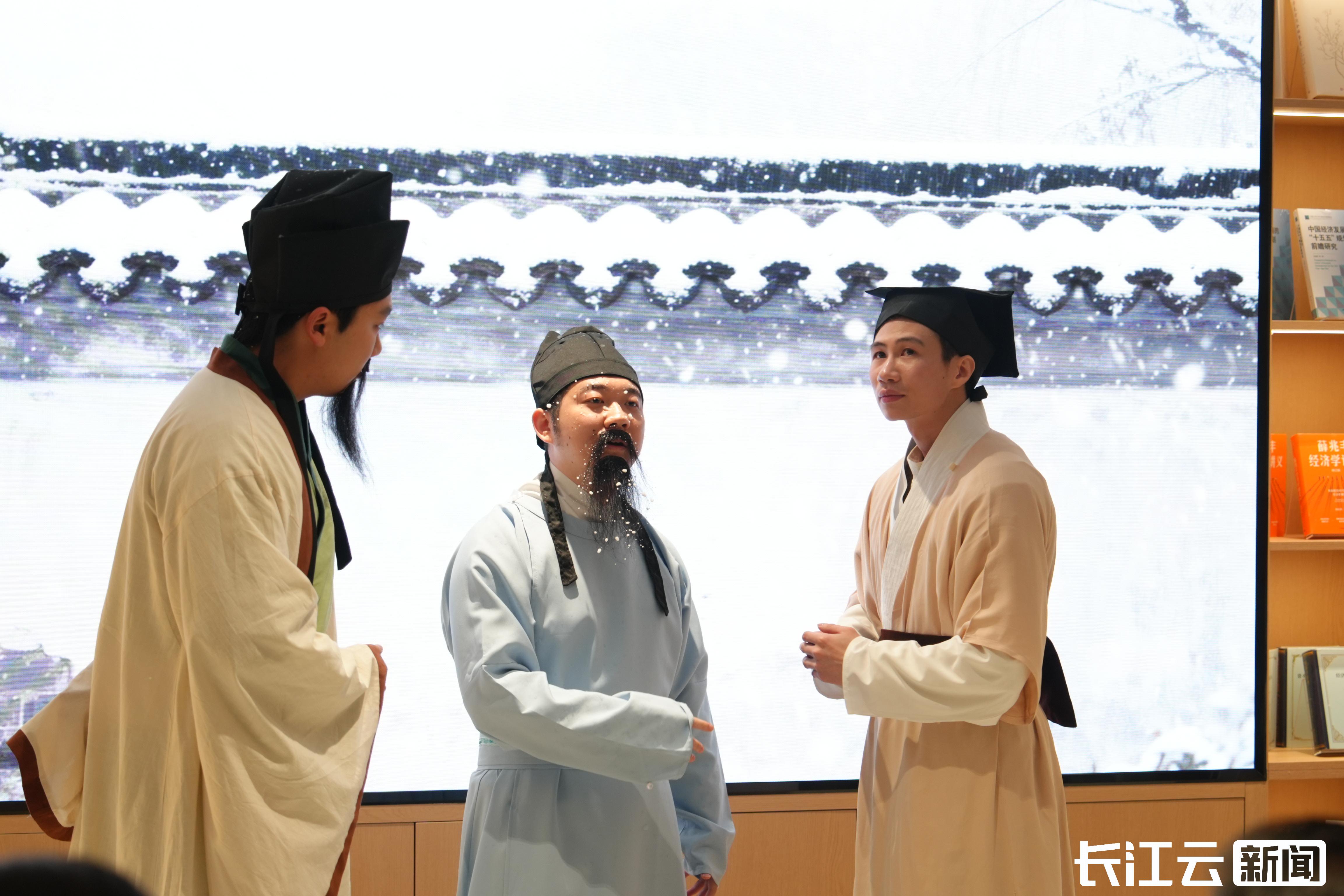 在开业仪式上,黄陂区文化馆副馆长吴健带来湖北大鼓《新华·文化之光》,以本土艺术形式讲述书店七十余年的坚守与创新;武汉市新华书店呈现的文脉创编剧《程门新雪》,串联“程门立雪”典故与当代阅读盛景,诠释书店从“承载知识”到“孵化思想”的理念跨越。两场特色表演彰显了在地文化底蕴。