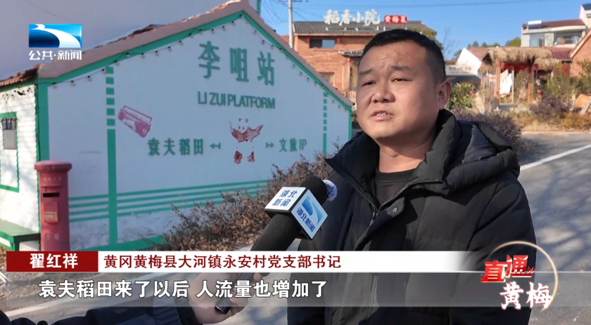 黄冈黄梅县大河镇永安村党支部书记 翟红祥:袁夫稻田来了以后,人流量也增加了,按照“连农带农”思路,发展产业、招商引资,老百姓尝到甜头,他们都很拥护的。