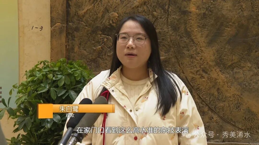 观众 朱白鹭:太震撼了,在家门口看到这么高水准的杂技表演,尤其是那些惊险的绝活,心脏都快跳出来了。