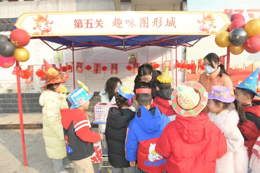 活动现场不仅设置了十大趣味闯关关卡,还专门布置了学生优 秀作品展览区,绘画、手工、书法等作品整齐陈列,让孩子们在闯关之余感受集体荣誉,增强自豪感。本次活动以趣味闯关为载体,融合多学科知识与能力训练,为孩子们搭建一个展现自我、快乐学习的平台。