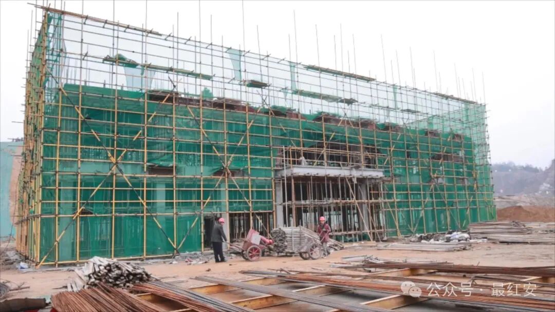 1月27日,位于红安县的石门山绿色矿山建材示范基地项目建设现场一派繁忙。项目加工区场地平整已基本完成,生活办公楼二层结构建设完毕,工人们正全力进行第三层施工,预计2026年初实现主体结构封顶。