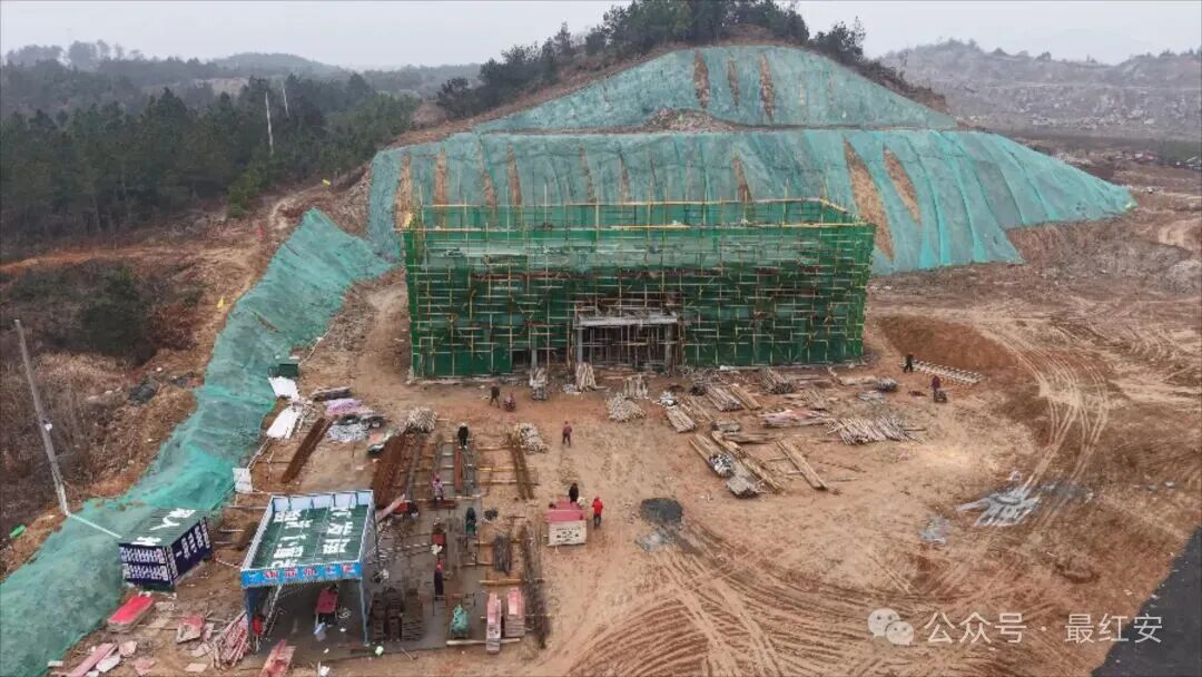 1月27日,位于红安县的石门山绿色矿山建材示范基地项目建设现场一派繁忙。该项目总投资达2.88亿元,设计年开采规模180万吨,通过倒排工期、挂图作战等方式,全力冲刺建设进度,确保项目按计划于2026年5月完成整体建设任务。