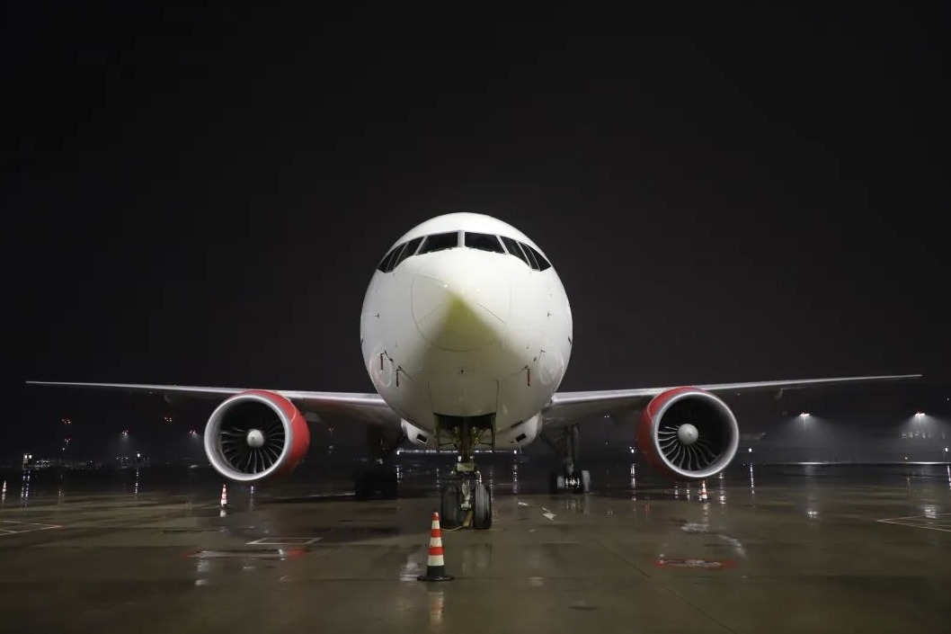 鄂州至利雅得航线开通首班货机,停在花湖机场停机坪。 通讯员王星予 摄
