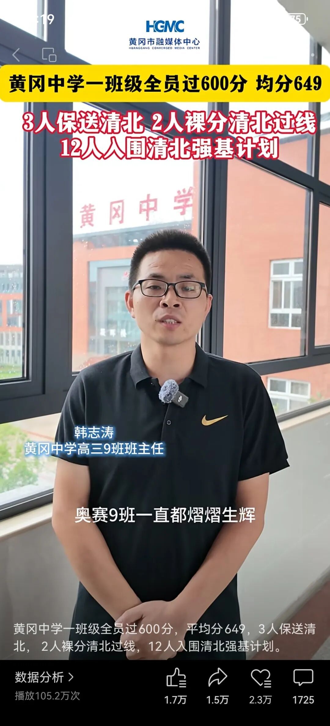 ▲黄冈中学一班级全员过600分,平均分649,3人保送清北, 2人裸分清北过线,12人入围清北强基计划。