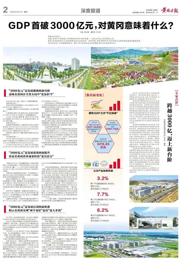 2025年1月26日,黄冈市统计局发布数据:2024年全市地区生产总值达3216.65亿元,首次突破3000亿元大关。这不仅是一个数字的跨越,更是黄冈在全省大局中地位和贡献加快彰显的有力证明。在大别山毗邻四市中,黄冈由第3位升至第1位;在全国20个革命老区重点城市中,由第8位跃升至第6位。黄冈用实干实绩书写了老区高质量发展的新篇章。
