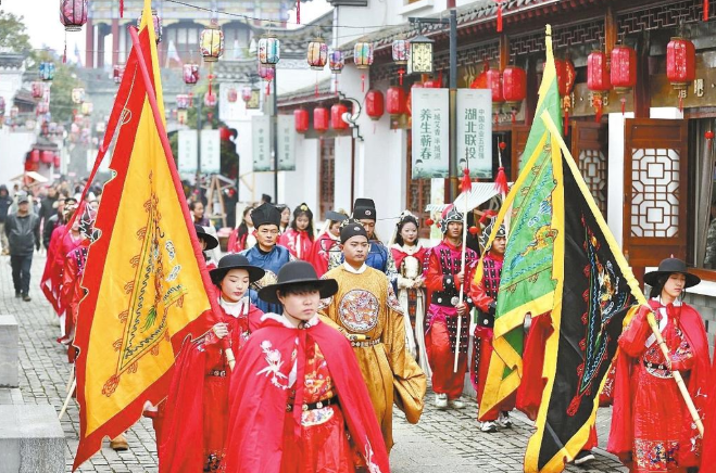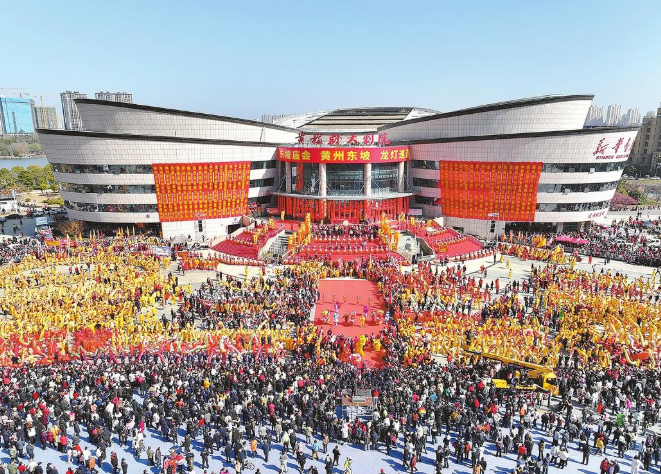 民俗活动从传统走向时尚。黄州区“东坡庙会”龙灯巡游活动,36条龙灯队伍齐聚展演,龙灯飞舞、鼓乐齐鸣,场面壮观,获央视网关注。英山县“非遗缠花贺新春”系列活动被央视《新闻联播》报道,带全国观众感受黄冈非遗独特魅力。蕲春县李时珍文化旅游区将非遗文化与汉服国潮相结合,推出“非遗汉服国潮嘉年华”,马踏云瑶主题巡游、荆王世袭大典实景演出、烟火秀等三大亮点轮番上演,提升游客沉浸式体验。