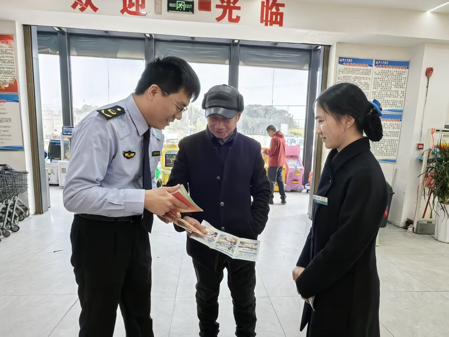 活动现场设置综合咨询台、宣传展板与便民服务点,各单位分工协作、同向发力,形成“金融+监管+医疗+警务”一站式宣传服务格局。市场监管局工作人员围绕食品安全、假冒伪劣识别、消费维权渠道、公平交易等内容,向群众讲解《消费者权益保护法》,普及识假辨假技巧,引导商户诚信经营、消费者理性维权;卫生院医护人员开展免费义诊、健康咨询、慢病科普,为老年群体测量血压血糖,讲解用药安全与健康消费知识,把民生服务送到群众身边;派出所民警聚焦电信网络诈骗、养老诈骗、非法集资、刷单返利等高发骗局,以案说法拆解诈骗套路,提醒群众牢记“不轻信、不透露、不转账、多核实”,守好个人“钱袋子”。