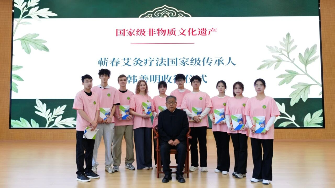 19日,国家级非物质文化遗产蕲春艾灸疗法国家级代表性传承人韩善明大师在黄冈职业技术学院举行收徒仪式,10名学子正式拜入师门,其中有4名俄罗斯籍留学生。