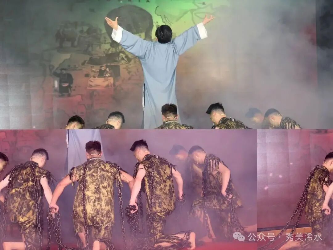 整场大思政课以红烛精神为主线,分为“巴水诗魂”“清华问天”“丹心许国”三个篇章。从浠水巴河畔的《二月庐》《红烛》,到怀恋母校的长诗《园内》;从留美期间《七子之歌》的悲鸣,到昆明街头《最后一次讲演》的呐喊,闻一多47载生命历程中的重要节点,以朗诵、歌曲、表演、文化小剧的形式在舞台上重新点亮。