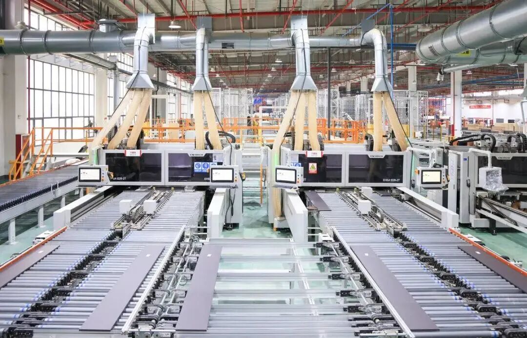 图为金牌橱柜自动化生产线