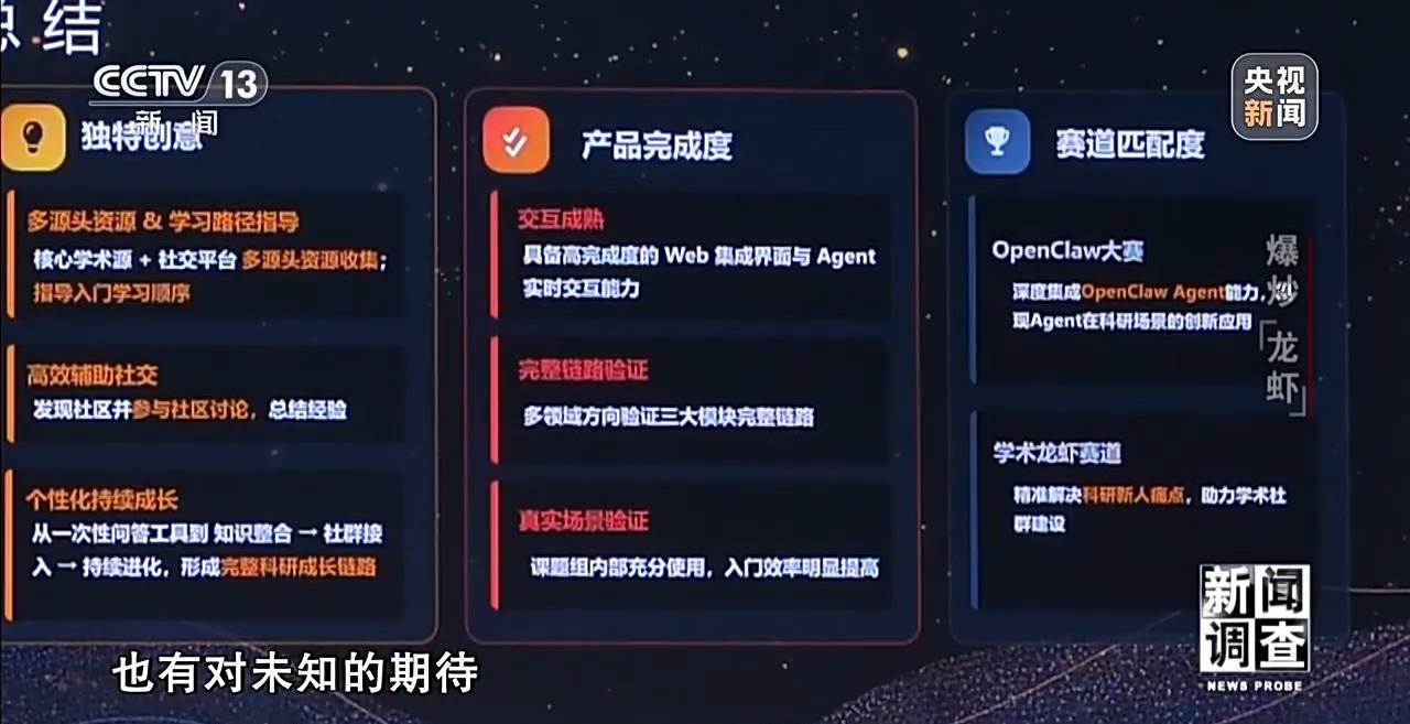 北京中关村学院人工智能研究院副院长 郑书新:我们接到了将近500个作品,我觉得是超预期,我们也应该去举办这样一场大赛,让大家一方面是看,给大家也是一种感受和理解,这“龙虾”到底能做什么,另外一方面我们也希望,能呼吁大家重视,我们的智能体在各行各业里面落地速度。