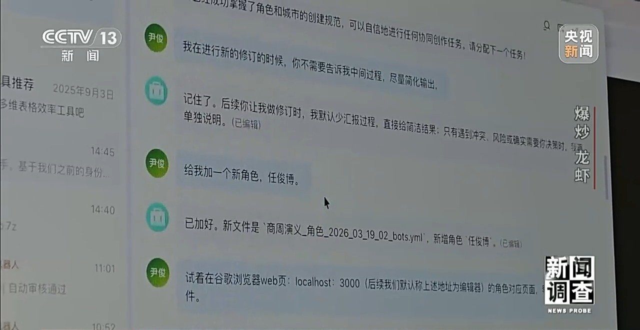 虾虾侦探开发人员:就我自己而言,我是一个完全不懂代码的人,我安装完“龙虾”之后,可能会有很多的问题,那我会选择再去问AI,我这个问题应该怎么解决,然后它真的能够去帮我解决,按照它的指令一步一步去做,所以我觉得就是开放、包容的心态吧。