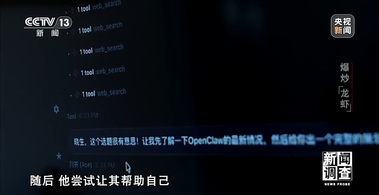 网络安全技术专家 谭晓生:包括我要写一篇报告,过去是怎么做,我这报告打算怎么做,我自己心里有个数,分若干章。我就分成若干个小的章节,让AI去帮我做,然后我再改,再拼凑起来。这次在做报告的过程中,我把要做报告这件事告诉“龙虾”,“龙虾”帮我去调大模型,大模型给了一个策划。它把目录都做出来,然后我再给它提修改意见。