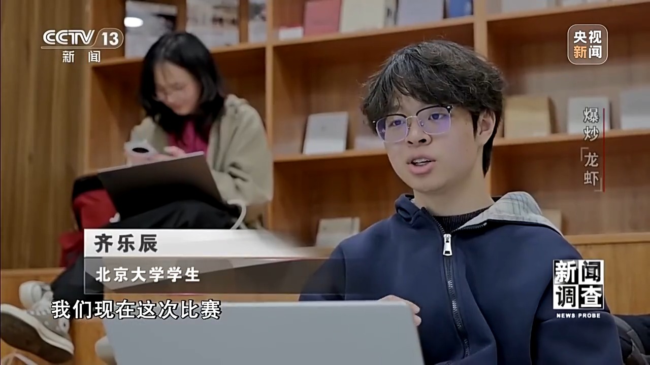 北京大学晚自习教室里,三名学生正在为今晚12点即将报名截止的“龙虾”大赛做冲刺准备。