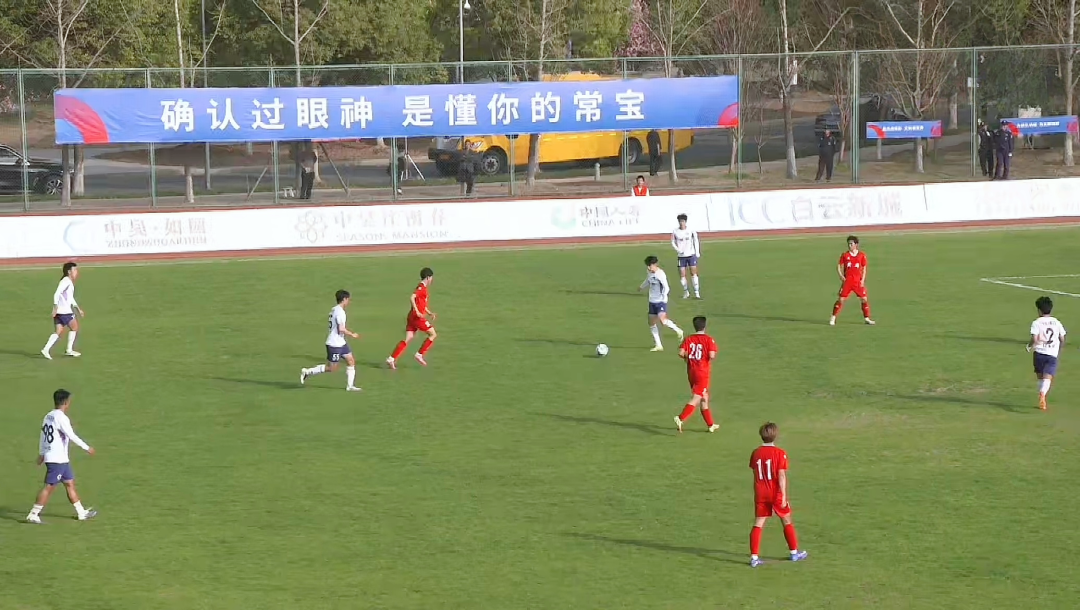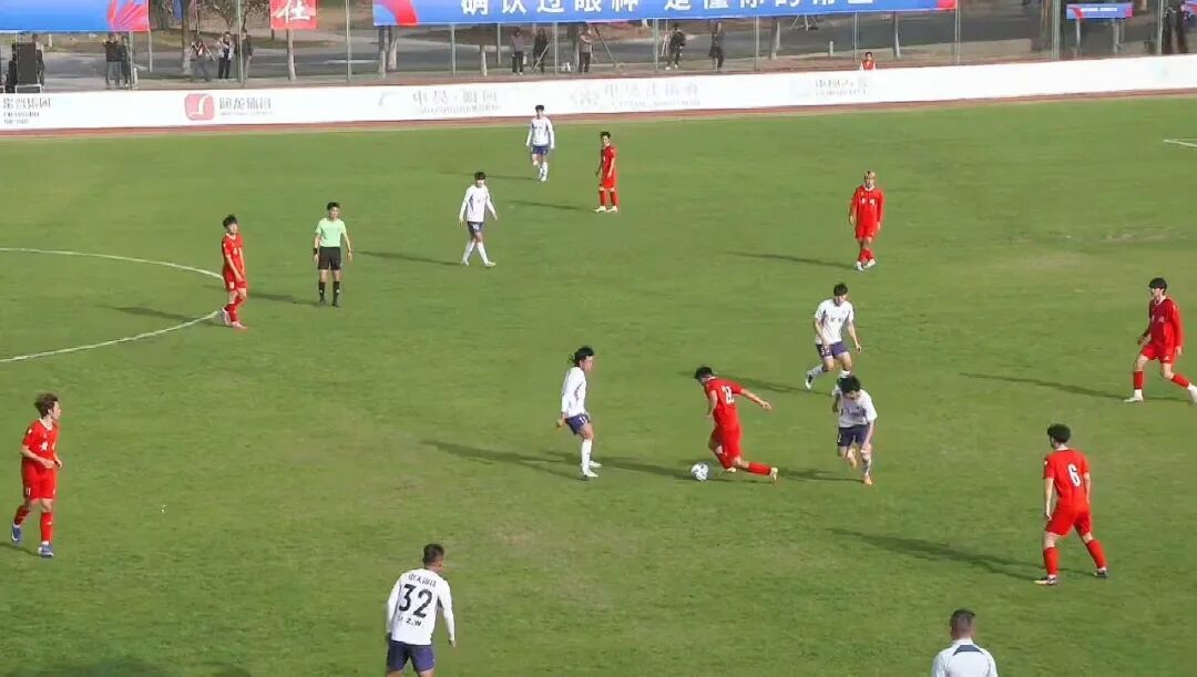 黄冈队采用451阵型,战术核心以防守反击为主,注重稳固后防线的同时伺机发动快速反击;常州中天钢铁队则以442阵型主打攻守平衡,凭借双前锋配置强化前场进攻火力。第18分钟,常州中天钢铁队抓住定位球机会,通过默契配合发起战术进攻,队员甩头攻门命中,比分暂时领先。第40分钟,常州中天钢铁队利用角球机会再下一城。两分钟后,又凭借巧妙的反越位战术撕开对手防线再度破门,比分瞬间来到3:0。
